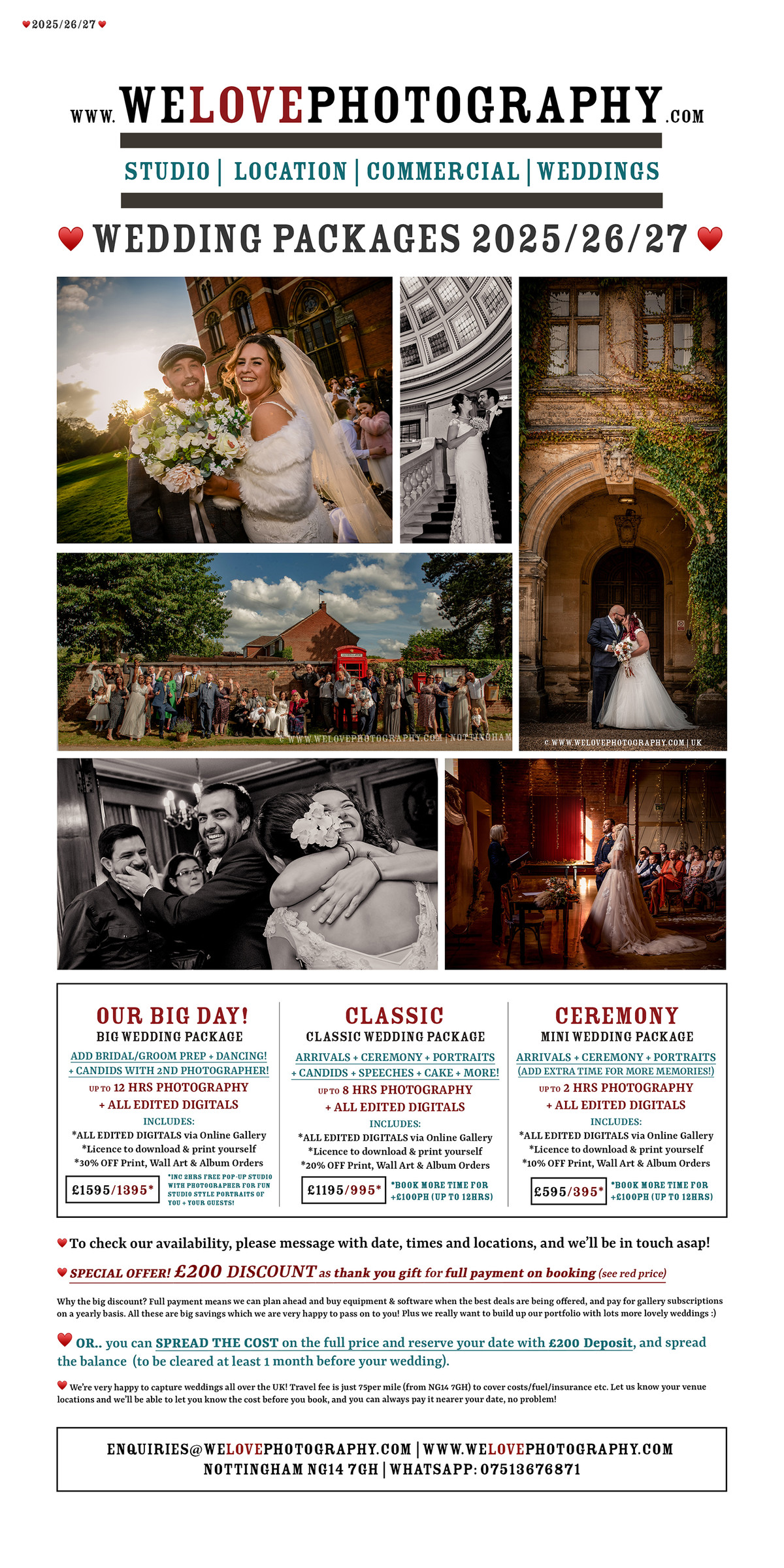 **Limited Time Special Offer!! SAVE £200 off the full price for 2025/26/27 weddings to fill the last spaces!! (T&C's apply, see below...)