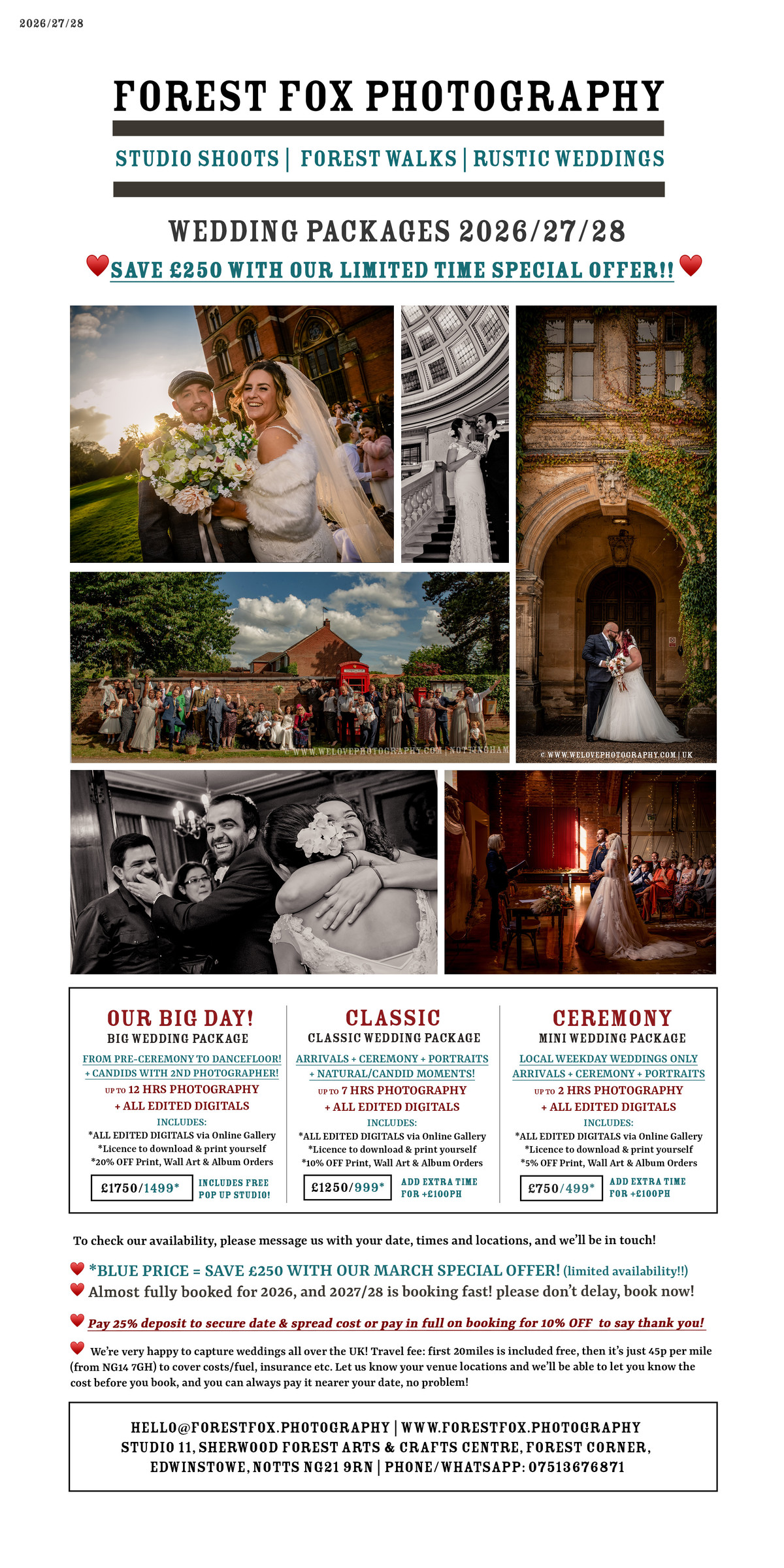 **Limited Time Special Offer!! SAVE £250 off the full price for 26/27 weddings to fill the last spaces!! (T&C's apply, see below...)